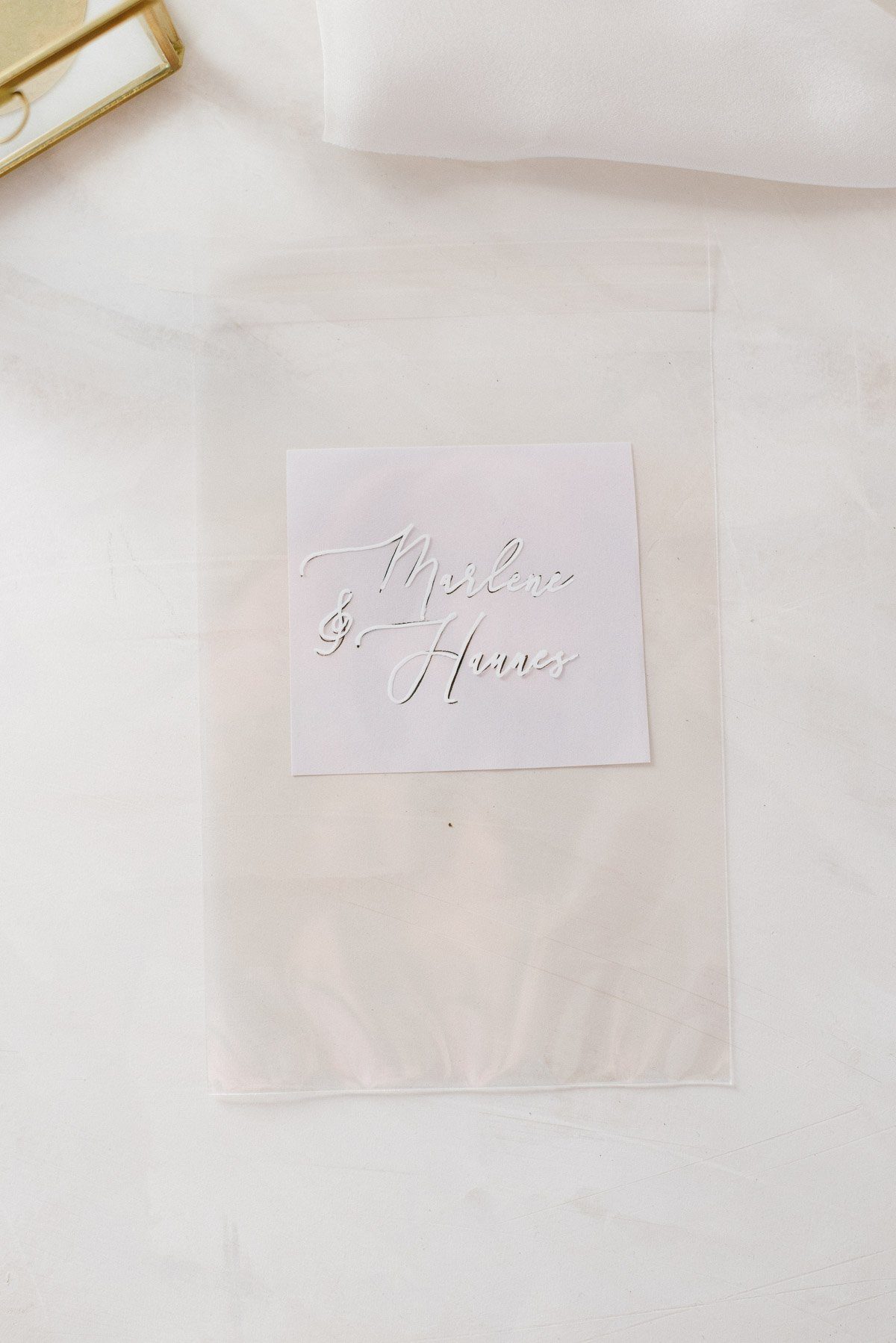 Bevor Ihr aufs Ringkästchen schreibt, solltet Ihr die Namen unbedingt erst mal auf einer Folie ausprobieren. Eine schlichte Plastiktüte reicht aus. Wichtig ist, dass Ihr herausfindet, wie sich der Stift auf solch einer glatten Oberfläche verhält. Gegebenenfalls könnt Ihr auch noch die Größe in der Vorlage anpassen und seid dann bestens gewappnet für das richtige Kästchen!