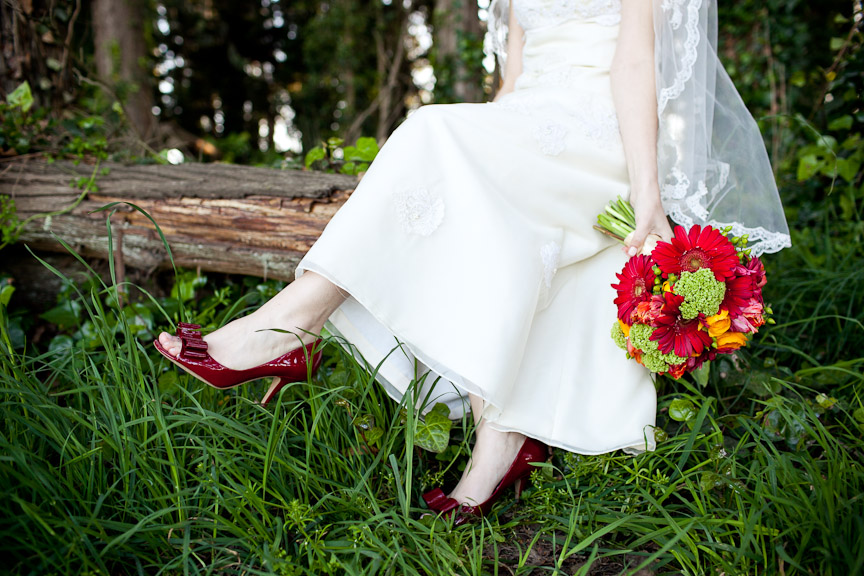Suuuper Idee :-) Meine Tanzschuhe, die ich zum Brautkleid tragen werde, sind rot – so wie mein Brautstrauß. Und Katja macht tolle Fotos davon!