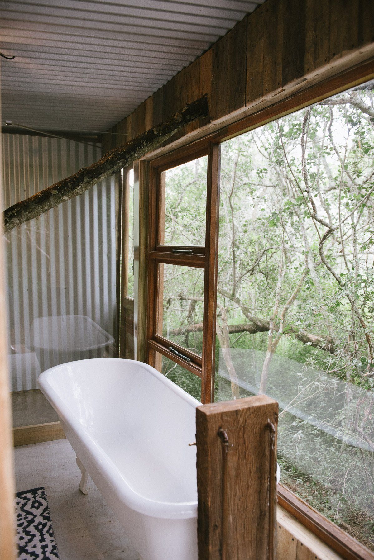 Wer sich nun fragt, ob das ganze Baumhaus auch ein Badezimmer besitzt, dem sei gesagt: Ja! In der untersteten Etage. Inklusive Baum, der mitten hindurch wächst und einer Badewanne mit Blick in die Natur.