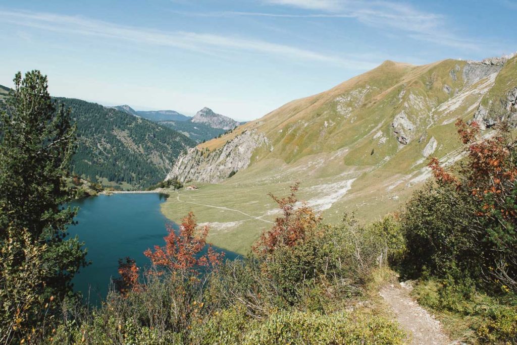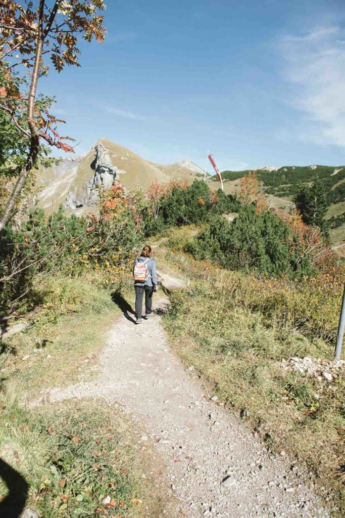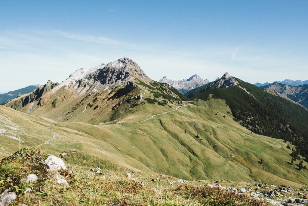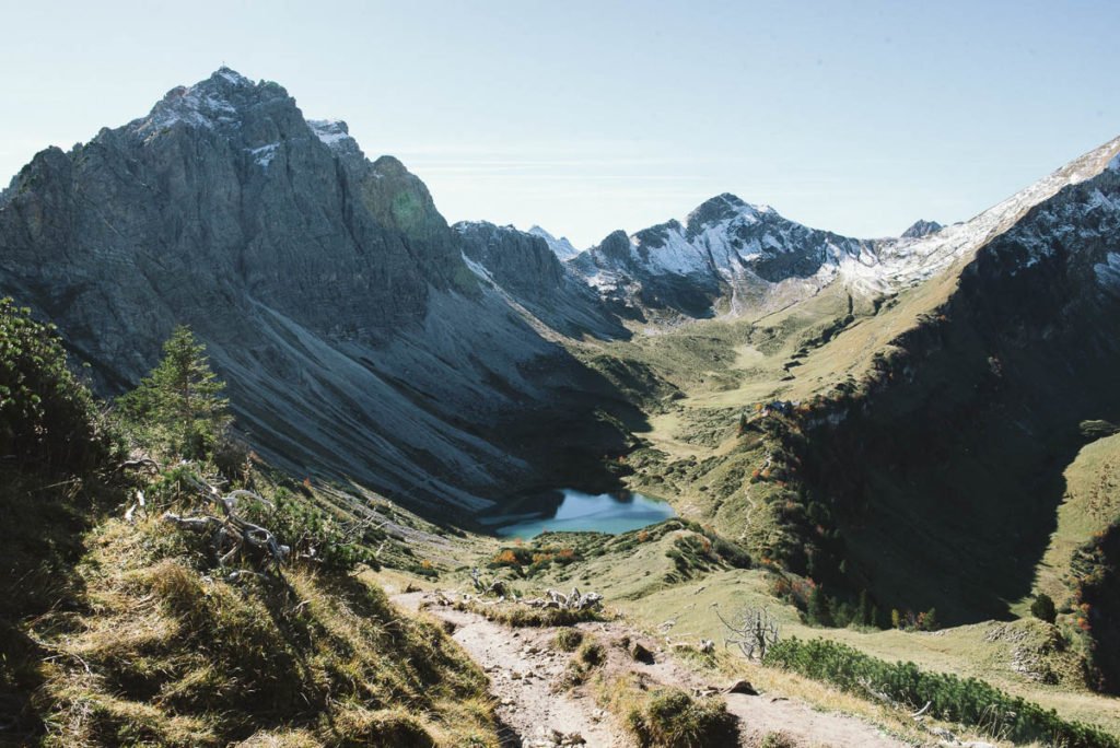 Auf schmalen Wegen und mit weitem Ausblick geht’s ab der Bergstation Neunerköpfle über den Lachensee bis zur Landsberger Hütte.
