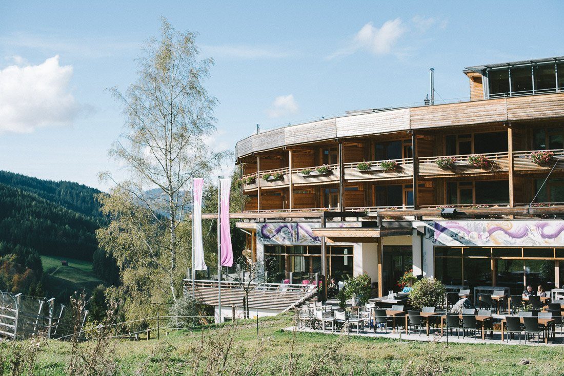 Natürlichkeit wird in jedem Bereich groß geschrieben in der Forsthofalm. Das Hotel besteht aus 100 % Holz und ist mit über 200.000 Holzdübeln verankert! Wir waren mehr als erstaunt, als Hotelmanager Markus uns die Bauweise näher brachte. In Kombination mit weiteren natürlichen Mineralien wie Stein und Schiefer entsteht ein sehr entspanntes Klima und eine individuelle Architektur.