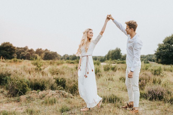 Sophie und Jan lieben die Natur. Das Draußensein, die klare Einfachheit, die Zeit zusammen in der Ruhe des Ursprünglichen. Sie träumen von einer Hochzeit am Strand. Alle tragen weiße Kleidung, die Füße streifen durch den Sand. Oder im Wald, begleitet von den schönsten Gesängen der Vögel und dem Zirpen der Grillen…