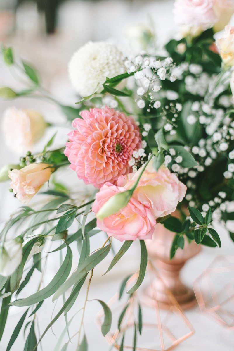 Es sollen unbedingt Café au Lait Dahlien in den Brautstrauß. Und üppige Landrosen in hell Peach. Dazu Eukalyptus, aber der großblättrige. Selbstverständlich soll der Tischschmuck das Thema aufgreifen, aber vielleicht mit günstigeren Blumen. Nur die Farbe muss genau stimmen, das ist sehr wichtig! So der dringliche Wunsch der Braut.