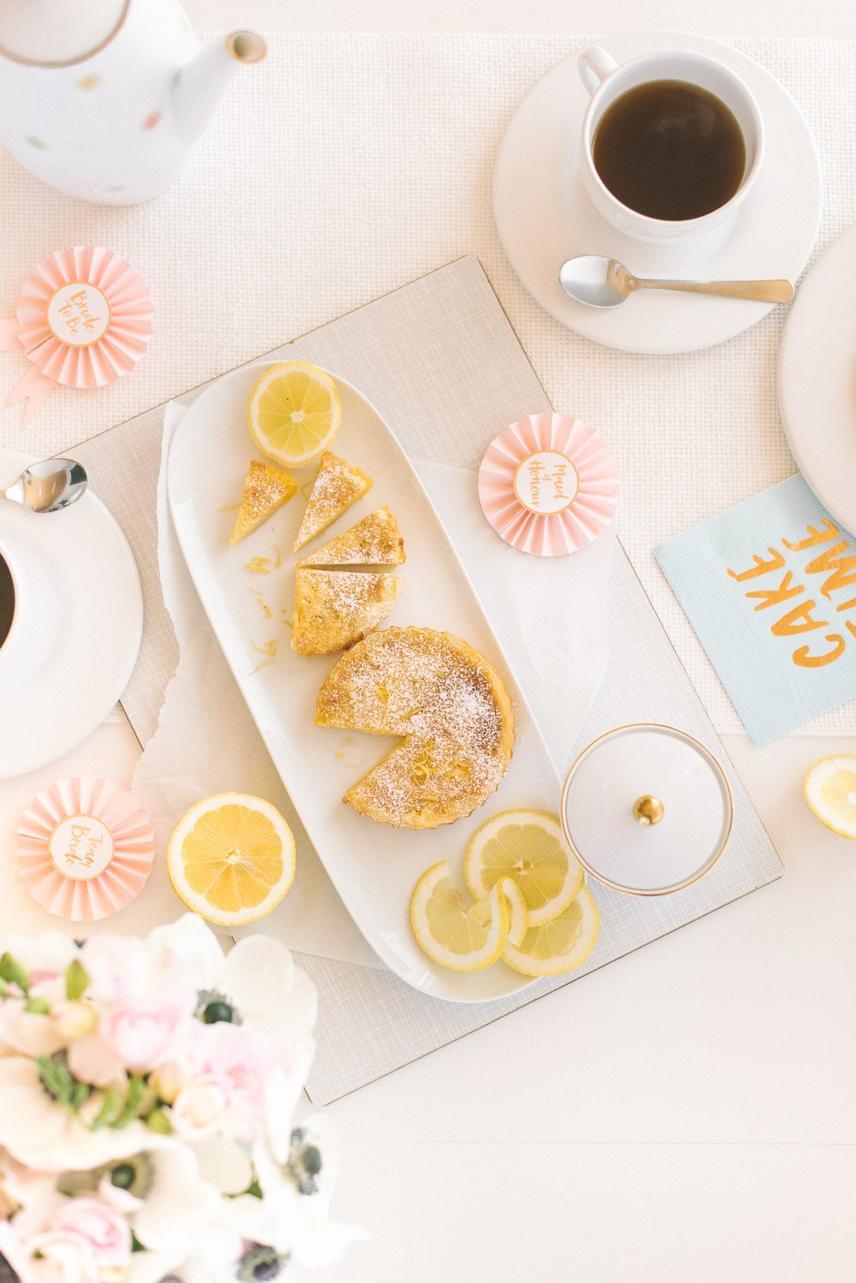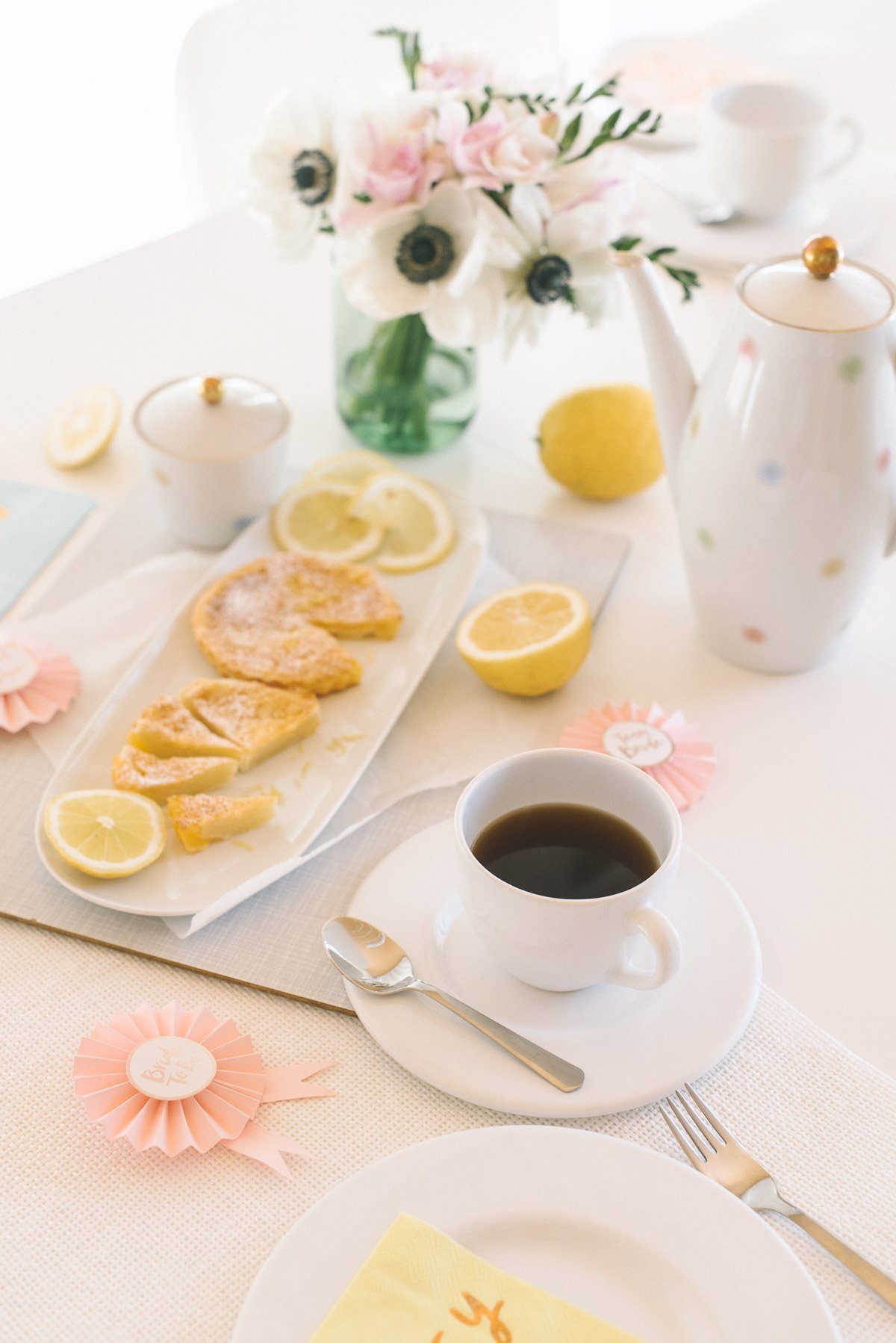 Die Runden mit Freundinnen und der Trauzeugin dürfen gerne zur kleinen Hochzeitstradition werden. Man trifft sich, genießt die aufgeregte Vorfreude und erledigt ganz nebenbei ein paar Dinge für den großen Tag. Klingt gut? Dann schaut Euch mal diese Kaffeetafel an. Kleine Zitronentartes, frische Blumen, fröhliche Farben und ein köstlich duftender Melitta Kaffee des Jahres.