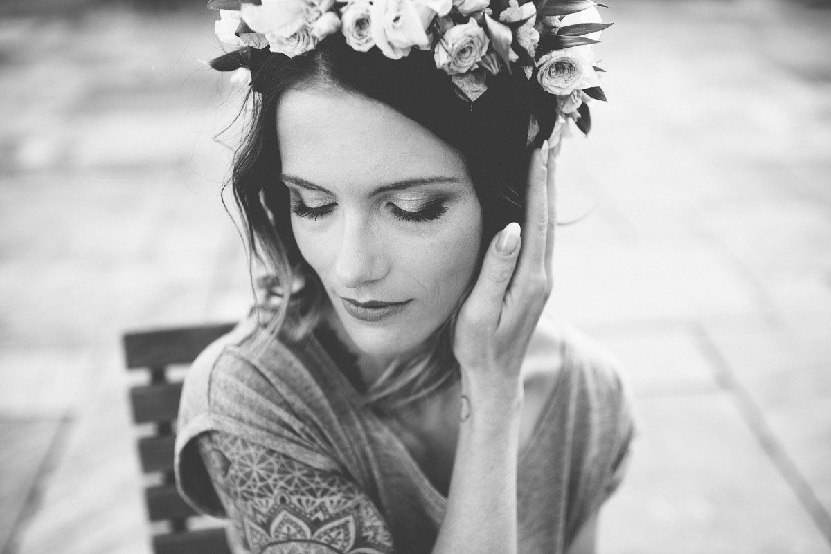 Die Zeit verflog wie im Flug und ehe wir uns versahen stand die Sonne tief am Horizont. Perfekter Zeitpunkt für ein paar Erinnerungsportraits auf der Dachterrasse! Also nix wie her mit den Blumenkränzen, rauf aufs aufgehübschte Haupt und ab vor die Kamera. Ganz klar, dass bei dieser Atmosphäre strahlend schöne Damen zu sehen waren!
