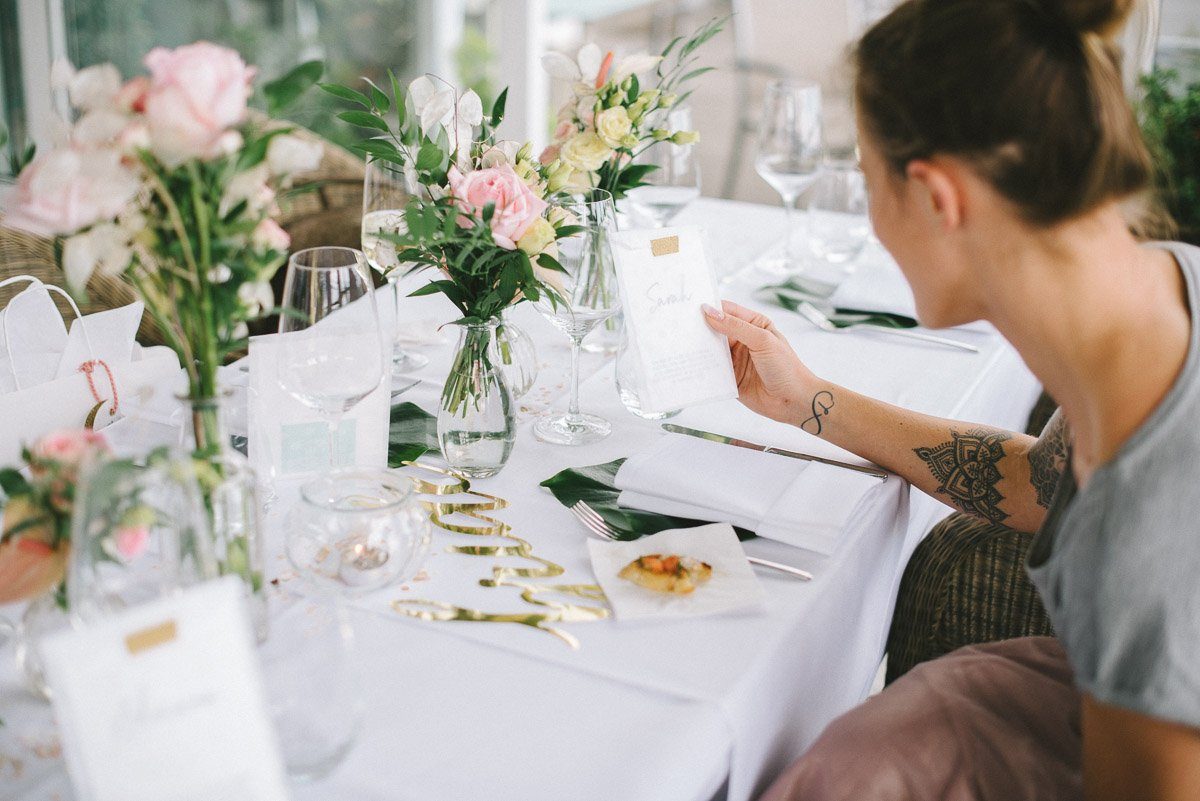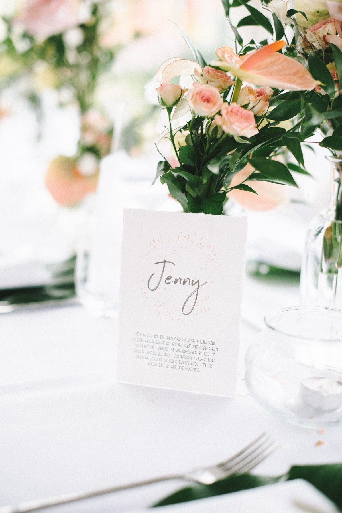 Auf dem Tisch warteten Postkarten mit den Namen der jeweiligen Dame, auf denen auch dessen Bedeutung aufgeführt war. Eine schöne Idee von Eva, die unter ihrem Label Zweiklein wunderbare Hochzeitspapeterie entwirft.