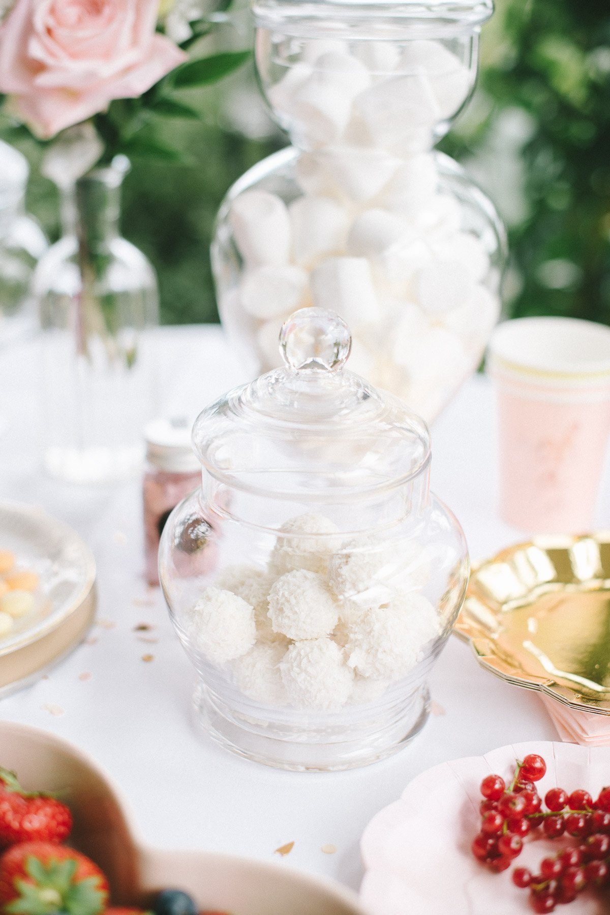 Eine süße Snack Bar stand zum Naschen bereit. Süßigkeiten in schicken Bonbonnieren und frische Beeren verleiteten zum Zugreifen.