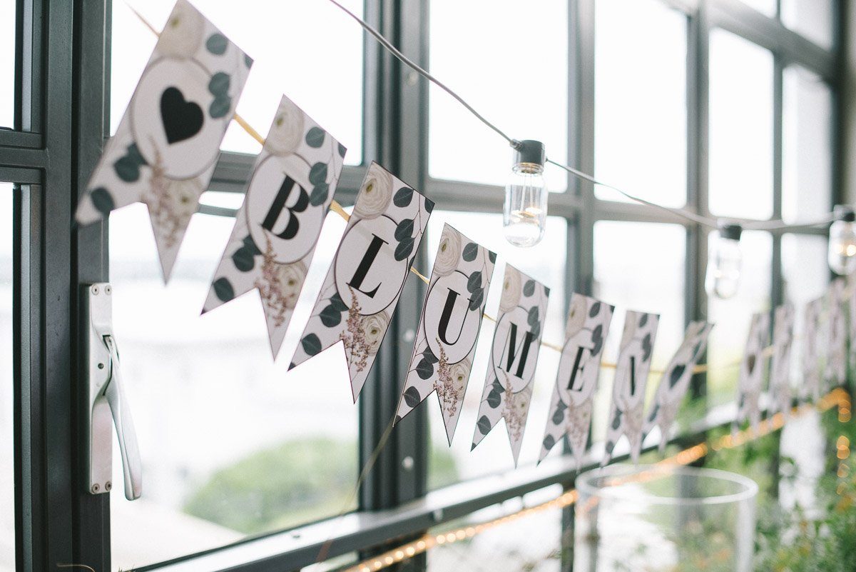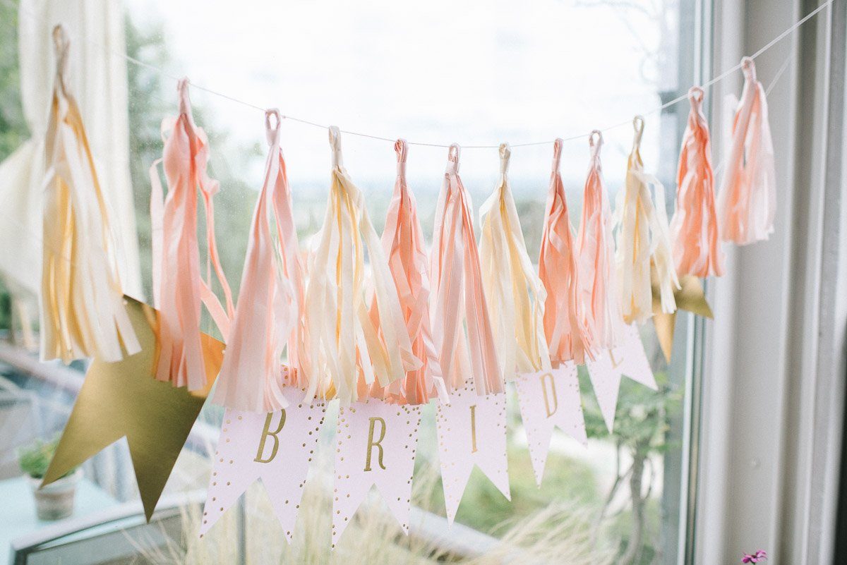 Passend dazu: der Cake Topper ‘He put a ring on it’ – den wir kurzerhand in ein Blumenarrangement gesteckt haben. Völlig hin und weg bin ich von der neuen Tassel Girlande, die bereits fertig gerollt ist und in zarten Pink- und Rosétönen im Wind flattert.