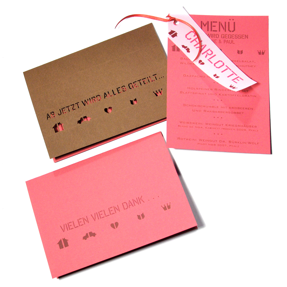 Kategorie: Einladungskarten & Papeterie Stichworte: Einladungskarten, Lasercut, Menükarte, Papeterie, Scherenschnitt