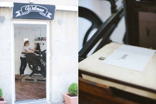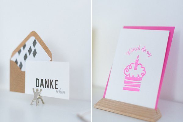 Nun ist sie zurück, voller Wissen und Tatendrang auch hierzulande wunderbare Papiererzeugnisse zu entwerfen und zu produzieren. Ich war völlig überrascht wie viele (Handarbeits-)Schritte notwendig sind, um diese geliebten Karten mit den eingeprägte Lettern in den Händen zu halten. Die Maschine hat sie übrigens in den USA lange gesucht, dann endlich gefunden und schließlich nach Deutschland verschiffen lassen. Der Schaufenster im Atelier musste herausgenommen werden, um sie hinein zu bekommen. Wenn das mal kein Unternehmergeist ist!