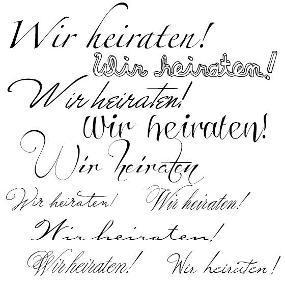 Aber wenn Ihr Euch der Herausforderung stellen wollt, geben wir Euch zumindest mal ein paar weitere Ideen an die Hand. Denn hier kommen Sie, unsere Lieblingsschriften, die auf Einladungskarten sicher gut aussehen werden!