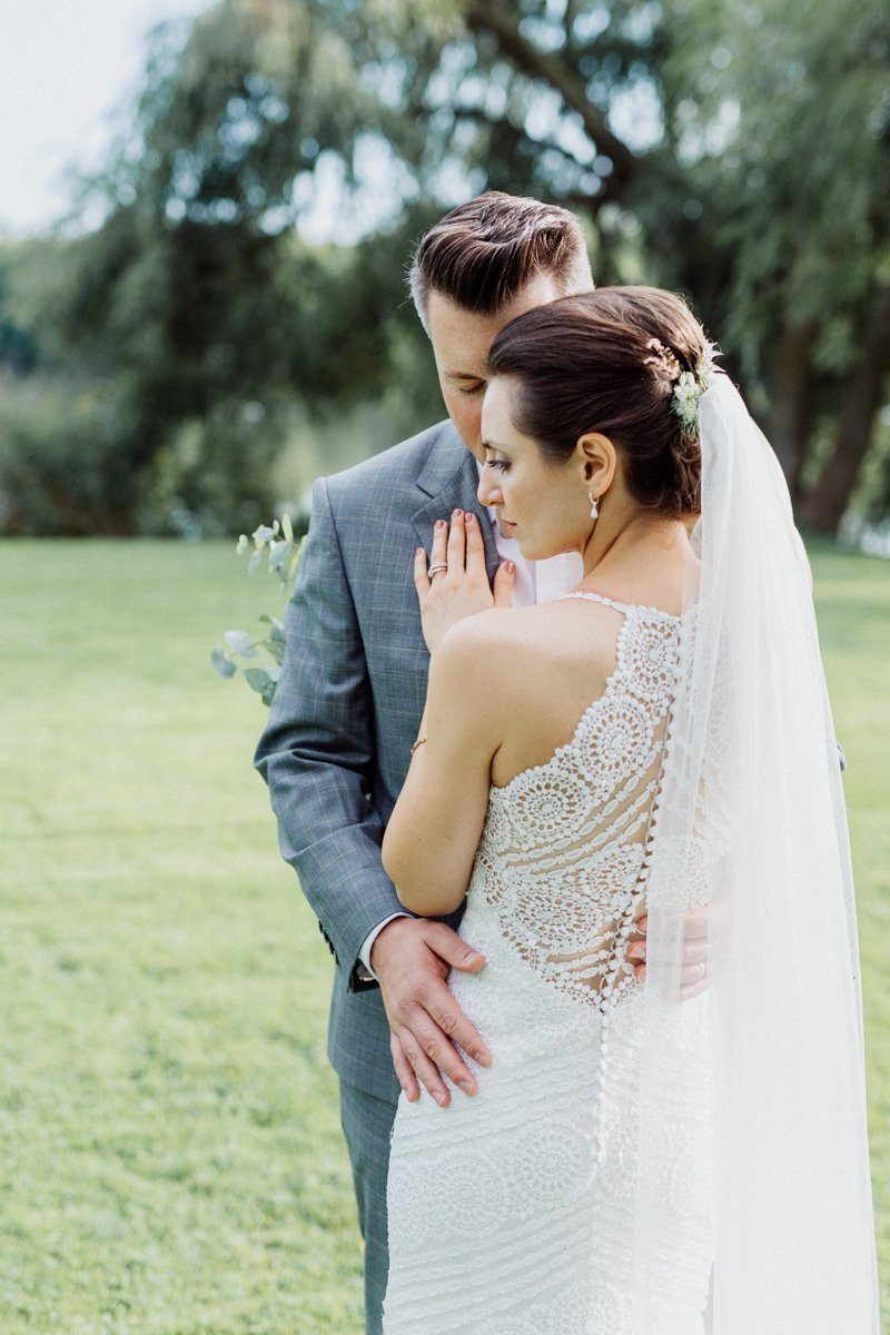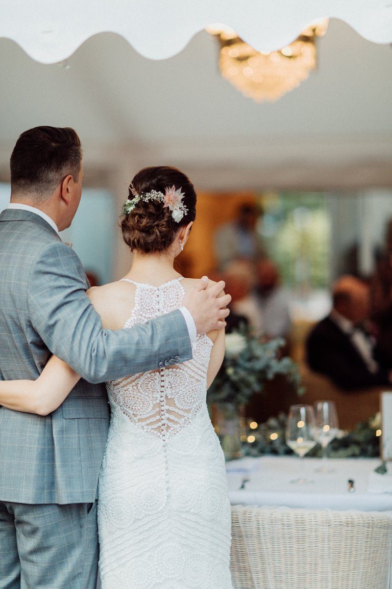 Alleine die Farben dieser Hochzeit rufen nach Sommer! Eukalyptus, Kupfer bzw. Roségold und das weiche Blau des Sees im Hintergrund! Ein perfektes Ensemble mit tollen Details, das viel Inspiration für Eure Hochzeit liefern wird!Brautkleid mit Stickerei am Rücken