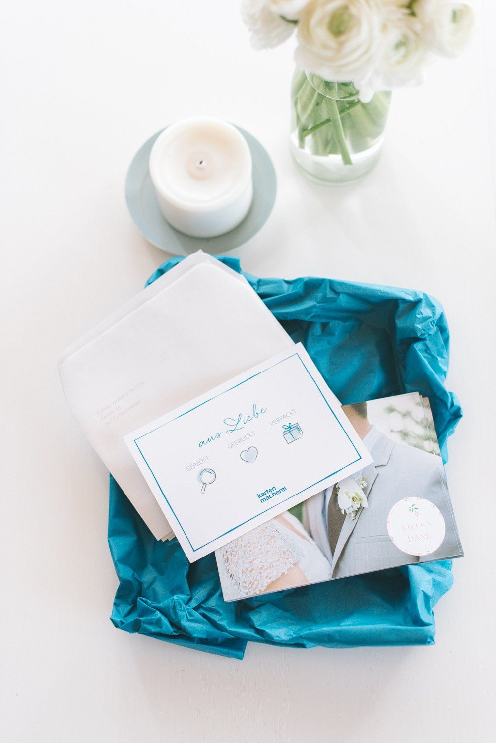 Bis Eure Einladungs- oder Danksagungskarten so liebevoll verpackt bei Euch eintreffen, sind ein paar Arbeitsschritte nötig, die ich mir im Detail angeschaut habe. Habt Ihr Lust mal mit nach Gilching bei München zu kommen? Dann kommt mit, ich zeige Euch, wie aus Euren Fotos und Ideen eine individuelle Dankeskarte entsteht.