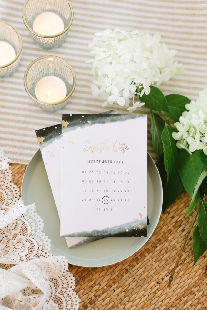 Sobald euer Hochzeitstag und eure Location feststehen geht es los. Ihr erstellt eure Save-the-Date Karten und kündigt eurer Fest an.