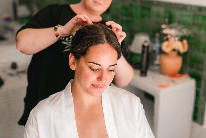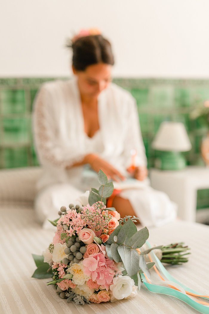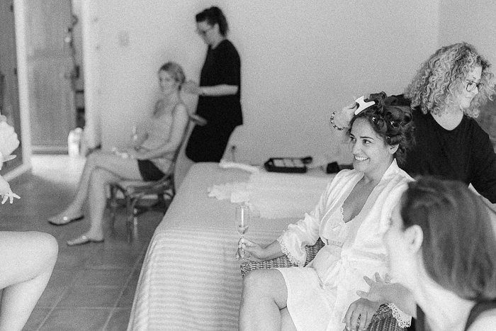 Bereits am Hochzeitsmorgen war die Stimmung ausgelassen und fröhlich. Entspannt mit Lockenwickler am Pool Chillen? Geht! Die Mädels überreichten noch ein Erinnerungsalbum an den Junggesellinnenabschied – Tränen vor Lachen und Freude waren garantiert.