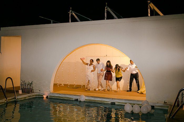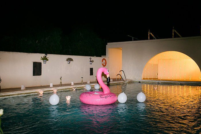 Als die Sonne sich dem Horizont näherte nahmen Gäste und Paar an den Tischen der Location Platz und liesen es sich schmecken. Bis in die frühen Morgenstunden wurde gefeiert und getanzt – das hatte der Pinke Flamingo im Pool so auch noch nie erlebt ;-)