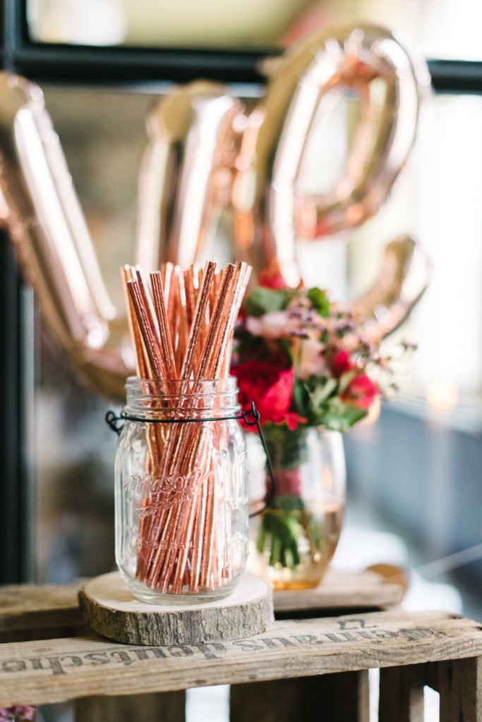 Der Stil Eurer Hochzeit darf sich gerne durch weitere Tagespunkte ziehen, denn nur so entsteht ein einheitlicher Look und ein stimmiges Ganzes. Wie wäre es mit roségoldenem Konfetti nach der Trauung? Oder Papiertrinkhalme in Roségold beim Sektempfang an der Location. Diese Kleinigkeiten machen Euren Tag persönlich und individuell!