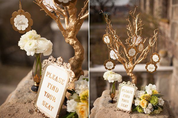 Kategorie: Hochzeitsdekoration Stichworte: Dekoration, Fotos, gold, Hochzeitsdeko, Styled Shooting, Tischdeko