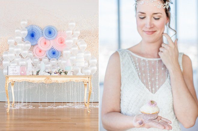 Zum Abschluss noch etwas für die Detailverliebten unter Euch: Habt Ihr auch den Sweet Table von Gretarmarlene ausgiebig betrachtet? Und diese Dekoration aus Faltrosetten und Ballons ist schon keine Dekoration mehr, sondern eine Kulisse! Auch La Chia’s Brautstyling ist zauberhaft und lässt dem perlenbestickten Hochzeitstraum von Viktoria Rüsche mit dezenter Eleganz galant den Vortritt. Wie findet Ihr das Outfit des Bräutigams? Wir sagen: Schick, sehr schick, grandiose Farbwahl und -kombination.
