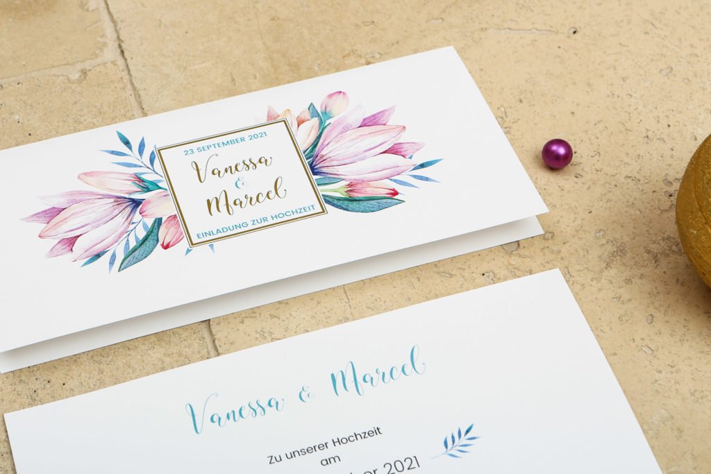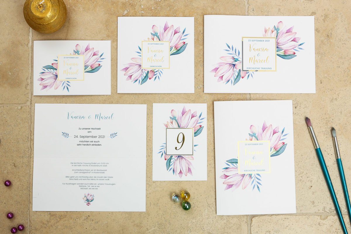 So wundert es nicht, dass die Kombination aus zarten Aquarellmalereien im floralen Stil hervorragend mit einer Kalligrafieschriftart harmoniert und von goldenen Details gekrönt wird. Die Serie Blumengold ist ganz neu im Sortiment und hat mich direkt im Sturm erobert. Per Hand aquarellierte Lilien, eine geschwungene und eine moderne Schriftart und gekonnt platzierte Elemente in Goldfolie – absoluter Augenschmaus!