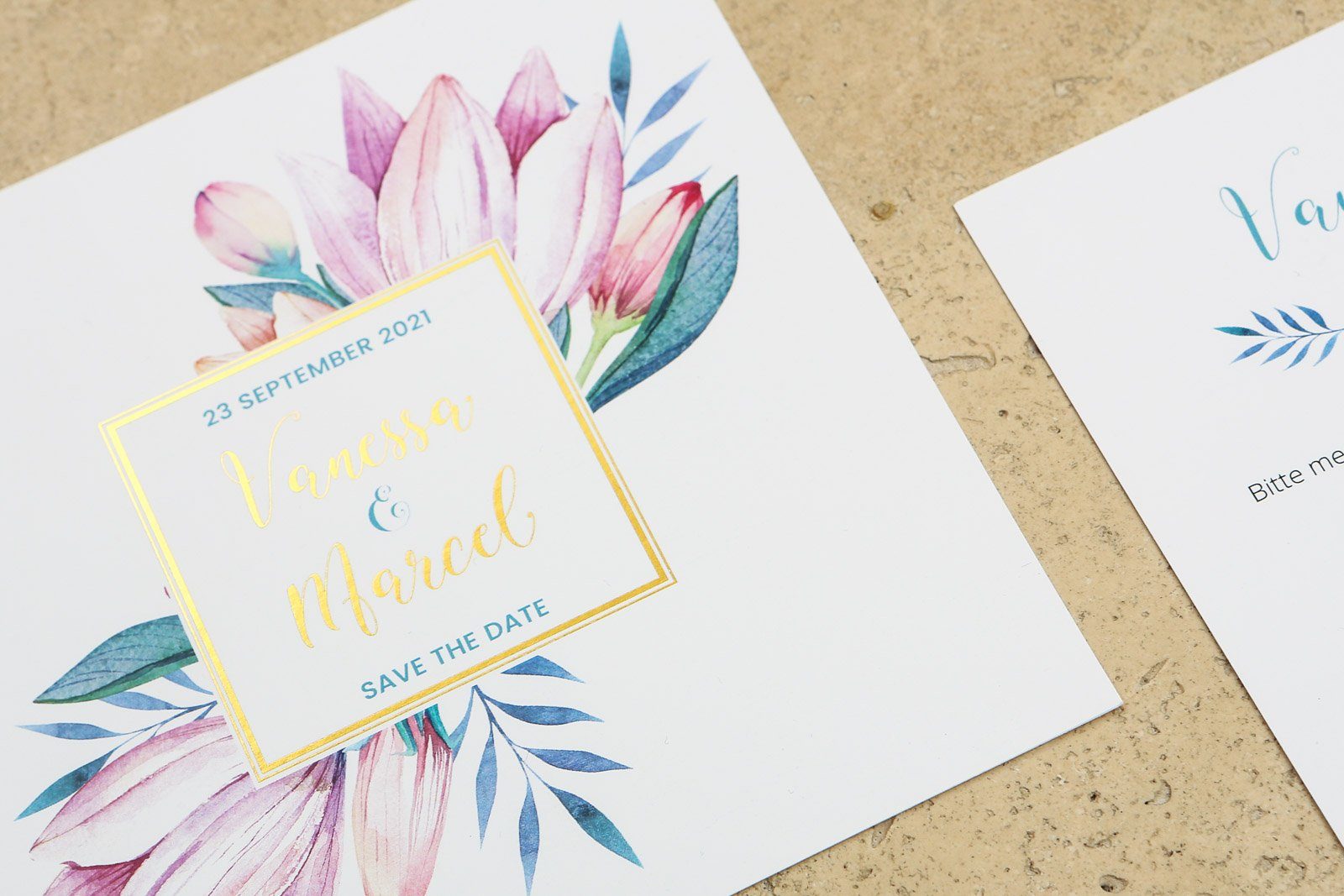 So wundert es nicht, dass die Kombination aus zarten Aquarellmalereien im floralen Stil hervorragend mit einer Kalligrafieschriftart harmoniert und von goldenen Details gekrönt wird. Die Serie Blumengold ist ganz neu im Sortiment und hat mich direkt im Sturm erobert. Per Hand aquarellierte Lilien, eine geschwungene und eine moderne Schriftart und gekonnt platzierte Elemente in Goldfolie – absoluter Augenschmaus!