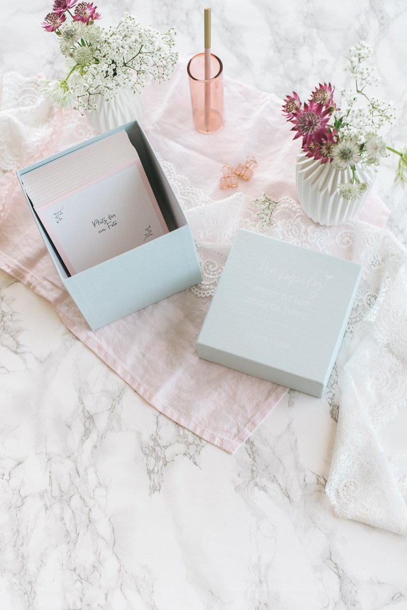 Ebenfalls Teil der Hochzeitskollektion von Odernichtoderdoch: Gästebuchkarten mit Aufbewahrungsbox. 80 stabile Karten liegen damit für Eure Gäste bereit, um Euch schöne Grüße zu hinterlassen.