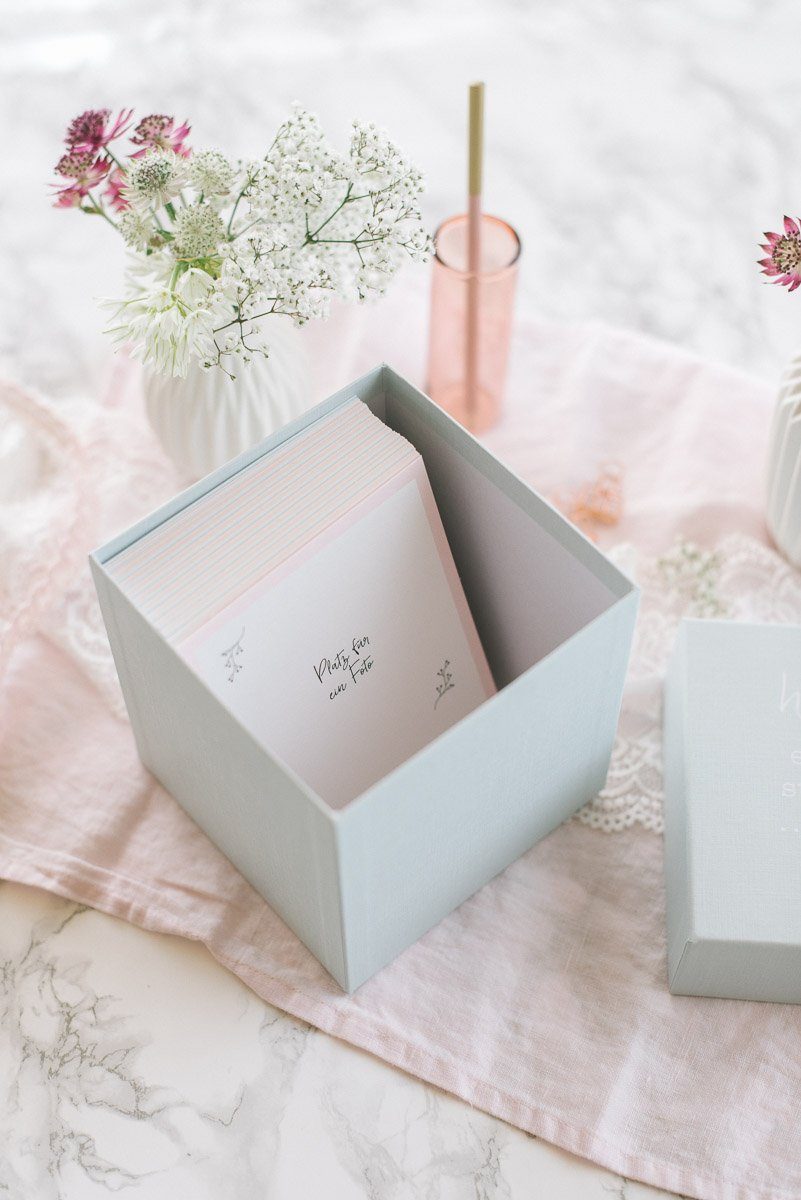 Ebenfalls Teil der Hochzeitskollektion von Odernichtoderdoch: Gästebuchkarten mit Aufbewahrungsbox. 80 stabile Karten liegen damit für Eure Gäste bereit, um Euch schöne Grüße zu hinterlassen.