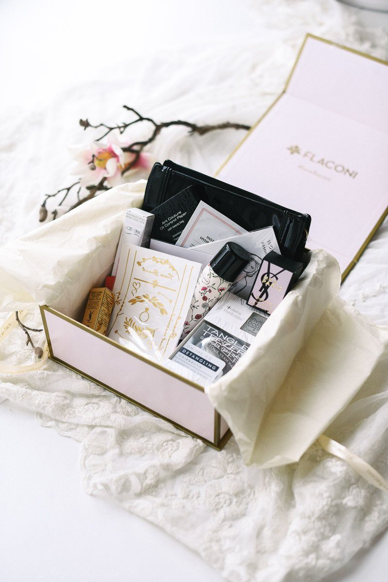 Öffnet man den sanften Magnetverschluss und zupft das Seidenpapier auseinander offenbart sich eine Schachtel voller hochwertiger Beautyprodukte, die für die Hochzeit, den Junggesellinnenabschied oder einen Girls-Night-Out genau richtig sind.