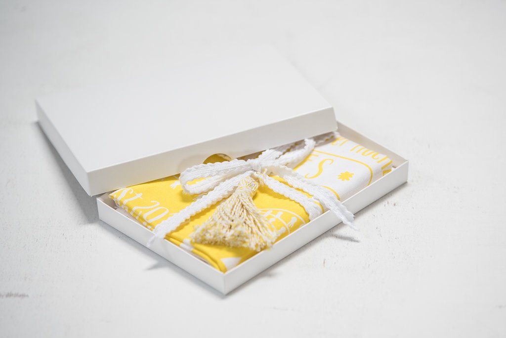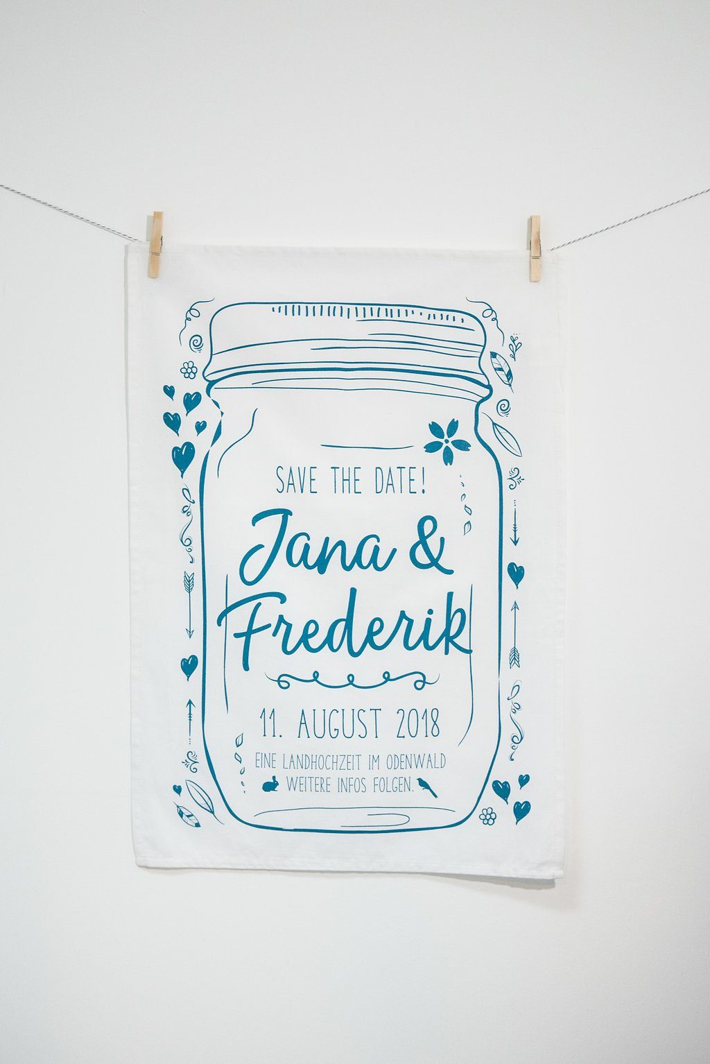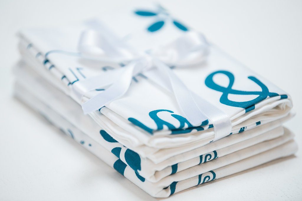 Die Leinentücher sind Hochzeitseinladung und Gastgeschenk zugleich. Der hochwertige und stylische Siebdruck kann problemlos bei 40° Grad gewaschen und anschließend gebügelt werden.