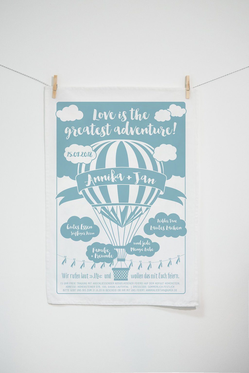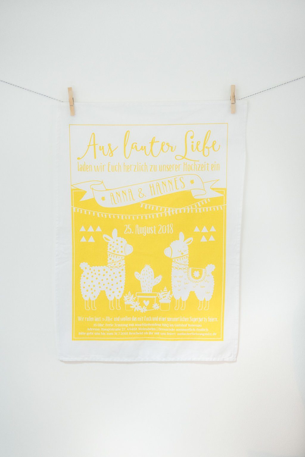 Der Kracher: die Leinentücher sind Hochzeitseinladungen! Nadja gestaltet sie individuell nach Euren Wünschen.