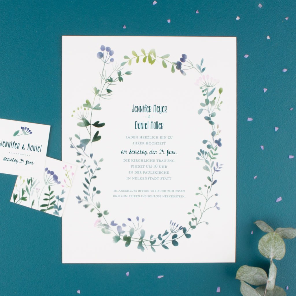 Romantisch, zart und anmutig wirken die neuen Hochzeitseinladungen. Von Hand aquarellierte Blüten und Ranken schmücken die Papeterie. Je nach Design werden sie stilistisch angedeutet oder bis is kleinste Detail ausgearbeitet.