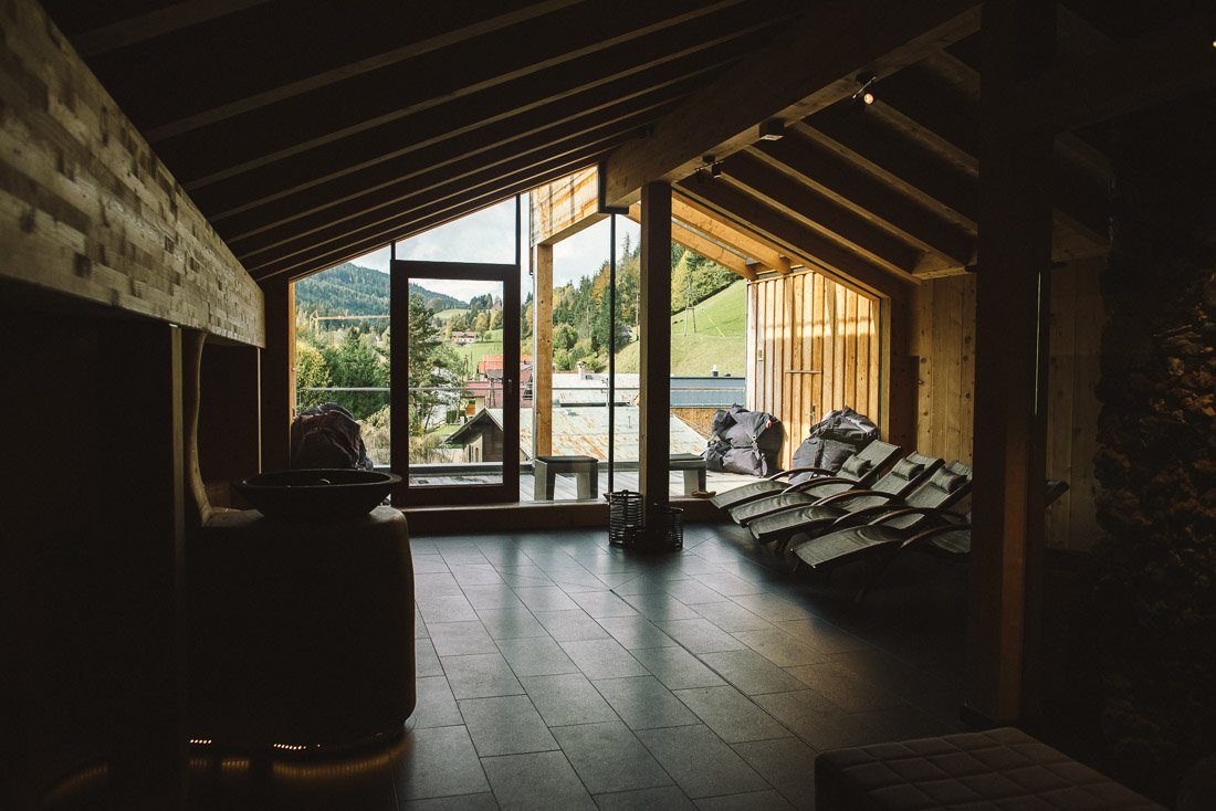 Wer Ruhe und Zweisamkeit sucht findet sie oben. Oben im und auf dem Mama Thresl. Liebtlingsplatz: Emty Room. Ein Ruheraum mit offenem Feuer und schier organisch anmutenden Holzbänken zum Relaxen. Noch weiter oben: das Dach. Auf dem sich im Sommer in die Sonne blinzeln und ganzjährig die Sterne beobachten lässt.