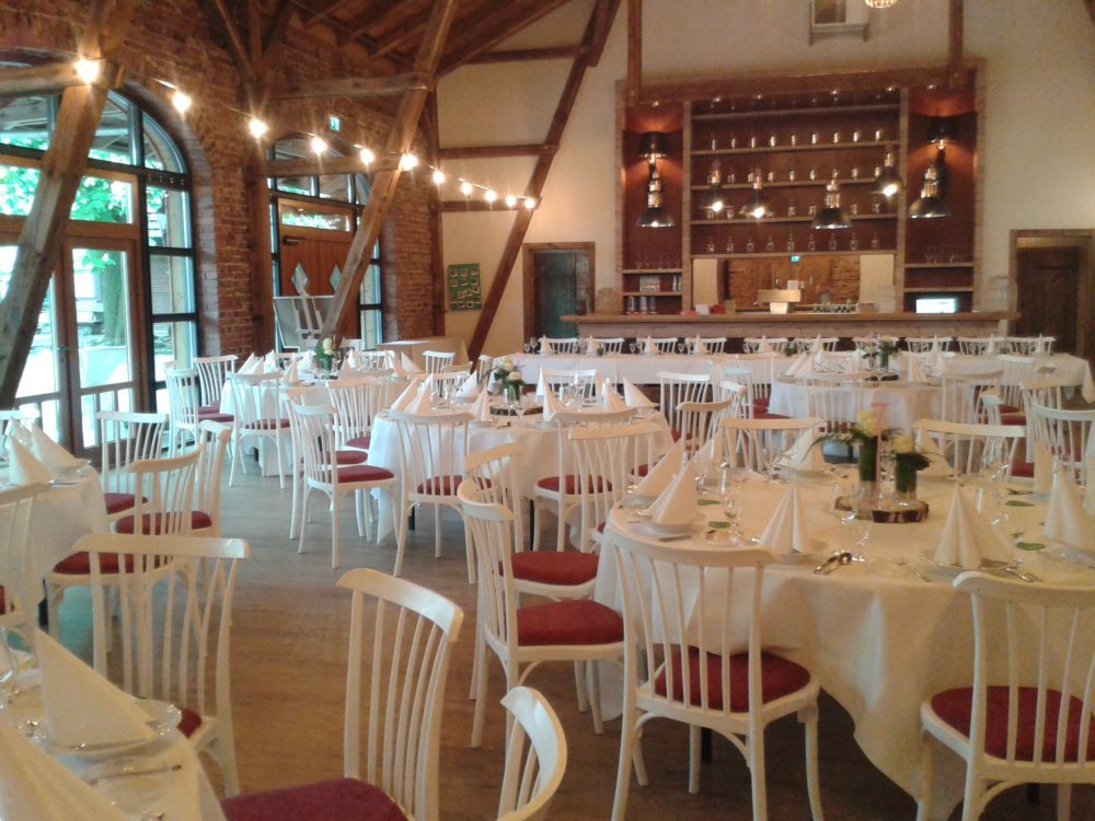 Für die Feierlichkeiten am Abend stehen Euch zwei Möglichkeiten zur Verfügung: In der „olen Schün“, dem Festsaal und in der neu renovierten Festscheune. Bis zu 200 Gäste haben im modernen Festsaal Platz. Die Festscheune ist rustikaler und uriger und von altem Baumbestand umgeben. Perfekt für eine Hochzeit im Vintage oder Boho Style.