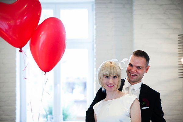 Eine super süße Kurzhaarbraut mit tollem Fascinator und feschem Kleidchen war Caroline als sie ihrem Benedikt das JA-Wort gab.