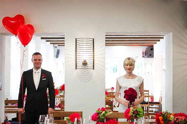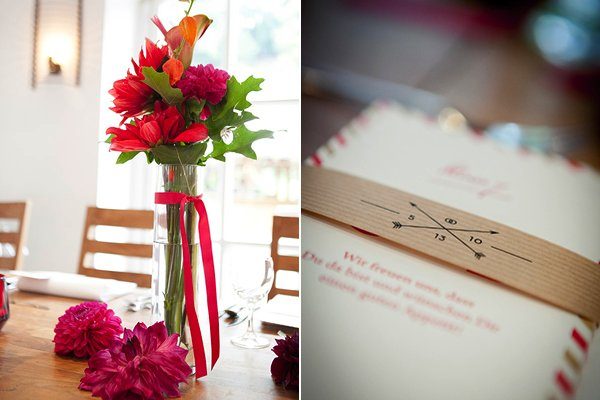 Das ist eine von diesen Hochzeiten bei denen einem mal wieder auffällt, dass weniger oft mehr ist. Keine Hussen, keine Tischdecken. Das kann man sich bei so einer schönen Location durchaus mal sparen und es schaut trotzdem toll und festlich aus mit den vielen Blumen auf dem Tisch. Und Rot und Pink geht auch zusammen wie Ihr seht. Vielleicht findet Ihr die ein oder andere Inspiration, bei den tollen von Gülten Hamidanoglu fotografierten Bildern.