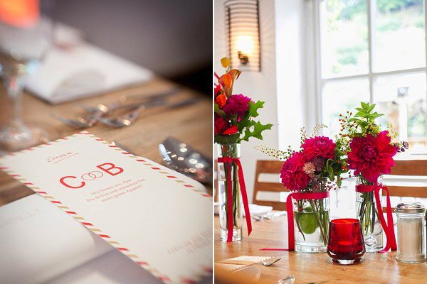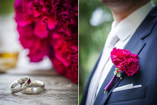 Ich bin zwar kein Freund vom klassischem rot und pink ist auch nicht so meins, aber dafür liebe ich Nelken (Revers) und Dahlien (Tischschmuck) <3