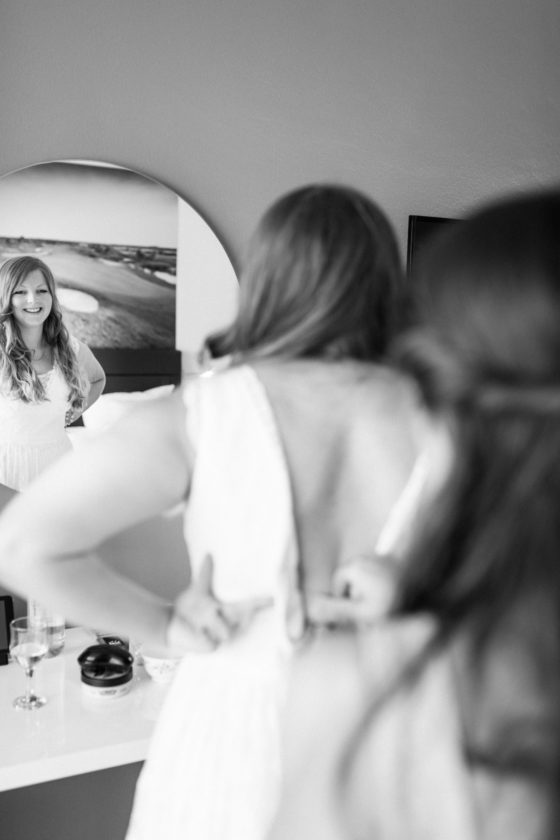 Nach dem Getting Ready im nahegelegenen Hotel – übrigens ein super Tipp: gönnt euch ein Hotel für die Hochzeitsnacht! – trage die beiden zur Trauung unter der großen Weide im Garten aufeinander.