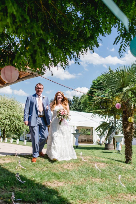 Emotion pur als Laura in ihrem kuessdiebraut Kleid am Arm ihres Papas auf Georg zuschritt. Die Sonne hat gelacht und die beiden ebenso. Freundentränchen inklusive!