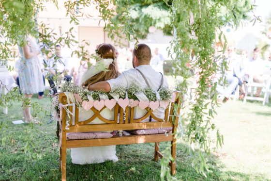 Heiraten in Omi’s Garten. Das klingt toll, oder? Vor allem, wenn Oma solch einen wunderschönen Ort ihr eigen nennt wie bei dieser Hochzeit. Ein absolut herrliches Plätzchen mit großen Bäumen, viel Platz für alle Gäste und sogar einem Pool in dem man die Füße abkühlen kann.