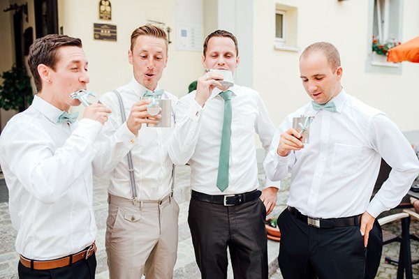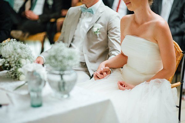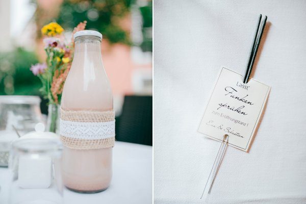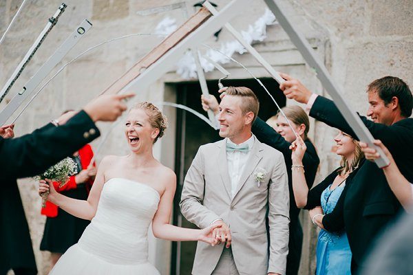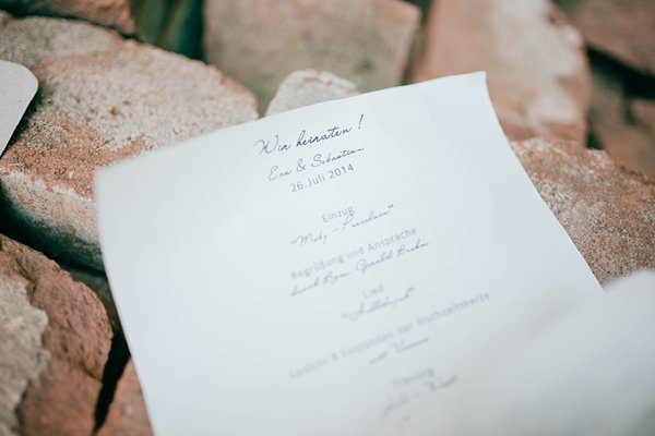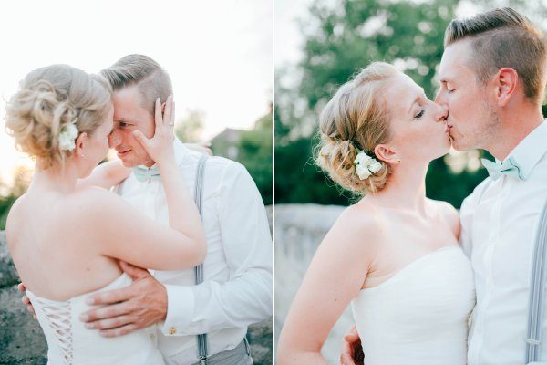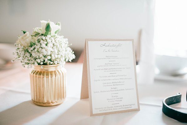 Eva und Bastis Hochzeit ist auch wieder ein super DIY Beispiel, die gesamte Papeterie haben die beiden selber erstellt und die Dekoväschen sind vom Trödelmarkt und wurden mit Goldfarbe abgesprüht. Wenig Aufwand für ein tolles Ergebnis, um nur ein paar Details zu erwähnen. Sehr hübsch und ungekünstelt schaut das Ergebnis aus. Dazu noch ein glückliches Paar – alles ist gut!