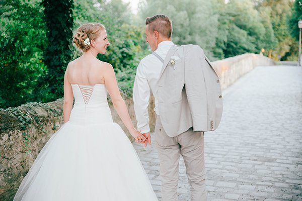 Fotos: Zuckerlicht Fotografie | Location: Alte Mälzerei Höchstadt | Brautkleid: Individuelle Hochzeit | Anzug: asos | Brautjungfernkleider: H&M | Papeterie und Deko: DIY des Brautpaares