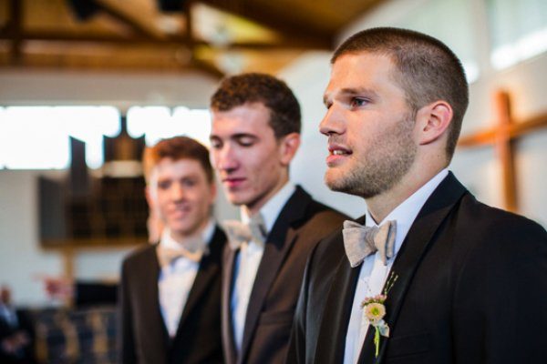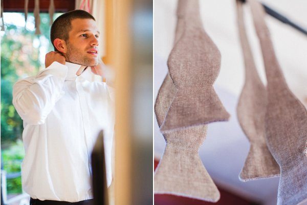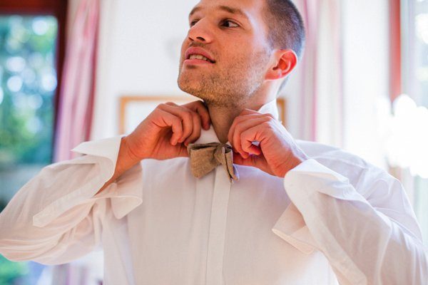 Schaut Euch mal die Fliegen an, süß oder? Ihr werdet’s kaum glauben, aber die hat der Bräutigam selber genäht, jawohl ja! Weils nicht immer teuer sein muss hat er einfach Stoffservietten genommen. Hammer!