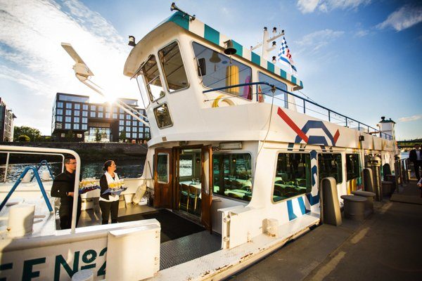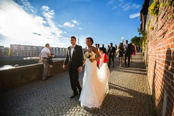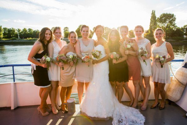 Nach der Trauung konnte die ganze Hochzeitsgesellschaft mit dem Schiff zum Café Sand fahren, einer tollen Location am Strand. Der Sektempfang auf dem Boot ist mal eine spaßige Alternative zum ganzen Aufwand den man vor der Kirche betreiben muss.
