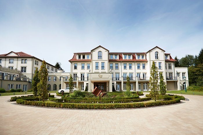 Kristin und Basti sind große Wellness-Fans und entschieden sich daher für das Wellnesshotel Schindelbruch als Hochzeitslocation. Ein idyllisches Naturresort mitten im Südharz. Hier feierten die beiden im engsten Kreis ihr ausgelassenes und edles Hochzeitsfest. Während sich Basti im sogenannten Jägerzimmer auf seinen Einsatz zum „JA sagen“ vorbereitete, wählte Kristin für ihr Getting Ready standesgemäß die Suite.  Die Trauung fand im Garten dieses traumhaften Anwesens statt. Mit Livemusik, Einlagen von ihren Gästen und gemeinsamen Aktionen wurde es eine sehr gefühlvolle aber auch lockere freie Trauung.  Der anschließende Sektempfang fand auf der Sonnenterrasse des Hotels statt. Das Brautpaar musste dort einen Holzstamm durchsägen und die Gäste durften sich an einem in den Hochzeitsfarben rosé und creme gehaltenen Sweet Table bedienen. Gegen Abend wechselte die Hochzeitsgesellschaft in den Festsaal des Naturresorts, der mit der üppigen Dekoration eine wahre Augenweide war. Ein festliches Menü wurde serviert, lustige, anrührende Reden gehalten und mit einer perfekt einstudierten Tanzeinlage durch das Brautpaar war die Party eröffnet. Es wurde bis in die Morgenstunden kräftig gefeiert! Die Wellnessangebote des Hotels wurden am nächsten Tag dementsprechend von allen gerne genutzt!