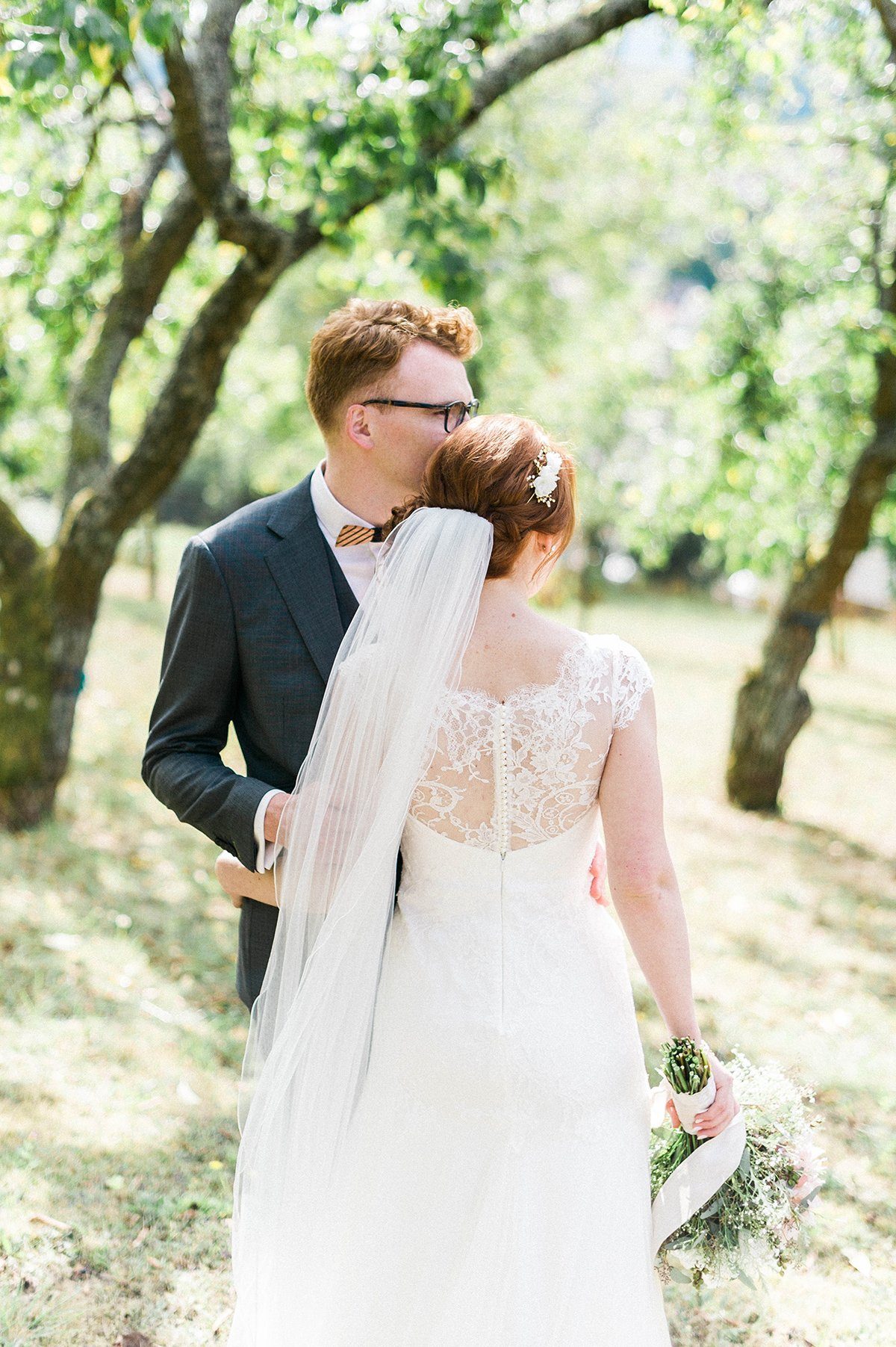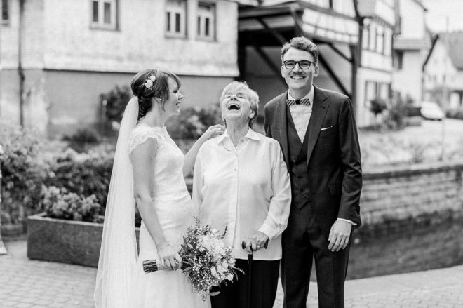 Wahre Liebe ist es übrigens auch, wenn der Bräutigam in der Kirche für die Braut ‘Ring on Fire’ singt. Ein Gänsehaut-Moment, nicht nur für die Braut. Und das Outfit der beiden ist großartig: Ein dezentes, stilvolles Spitzenkleid mit Schleier trifft auf einen eleganten Maßanzug mit Weste und Holzfliege. Dazu ein schwarzer VW Käfer als Hochzeitsauto – das freut das Fotografenherz! Wenn man dann noch Freunde hat, die als Peruanische Straßenmusiker das Fest bereichern, dann ist wohl richtig Spaß angesagt!