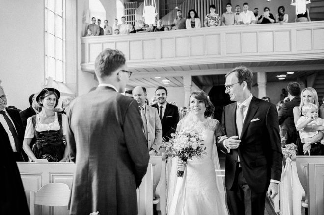 Fein und dezent. Grün und weiß. Leicht und natürlich. Fröhlich und unkompliziert. Stimmig und wunderschön anzuschauen. Eine kirchliche Trauung und viele Gäste. Ja, so könnte man sie beschreiben, die Hochzeit von Anne und Lukas letztes Jahr im Spätsommer. Das klingt jetzt nach dem ganz großen Ritt – mit vielen Profis am Werk in einer der Top-Locations mit jeder Menge Details und großem Budget. Aber falsch gedacht. Profis waren wenige ausgewählte am Werk, die Location untypisch aber wunderschön und der Rest einfach mit viel Liebe durch das Brautpaar arrangiert. Alles ohne das große Budget. Und alles wirklich zauberhaft.