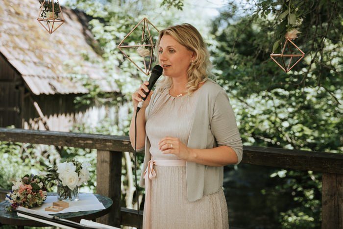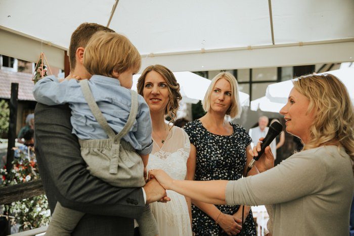 Saskia und Michael haben sich für eine freie Trauzeremonie entschieden, die von Traurednerin Sabine John durchgeführt wurde. Ein feierlicher Moment mit einer sehr persönlichen Ansprache, der nicht nur die beiden strahlen lies, sondern auch die Gäste rührte.
