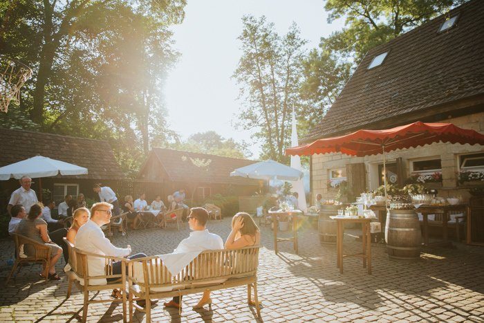 Der Sommer zeigte sich an diesem Tag von seiner schönsten Seite. Bei herrlichem Sonnenschein bis in den späten Abend genossen das Paar und die Gäste das Beisammensein. Kinder sprangen umher, es wurde getrunken, gegessen, gelacht und sich für das Paar gefreut. Genau so sollte es sein am Hochzeitstag, nicht wahr?