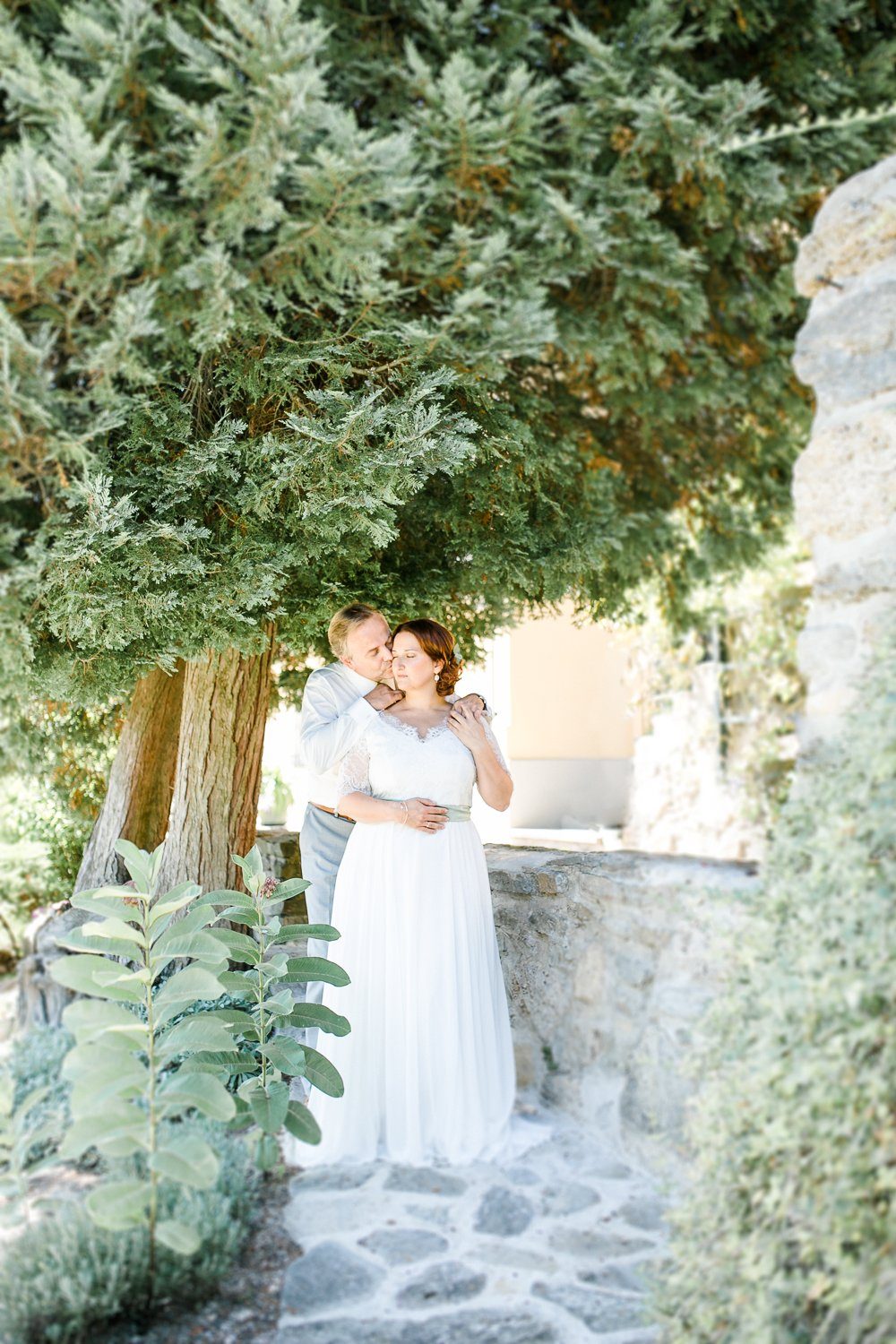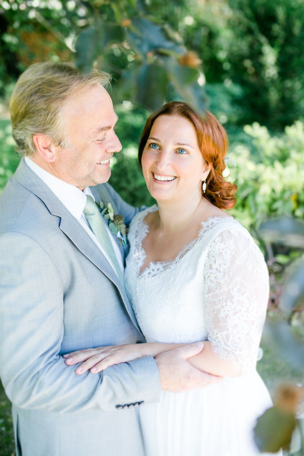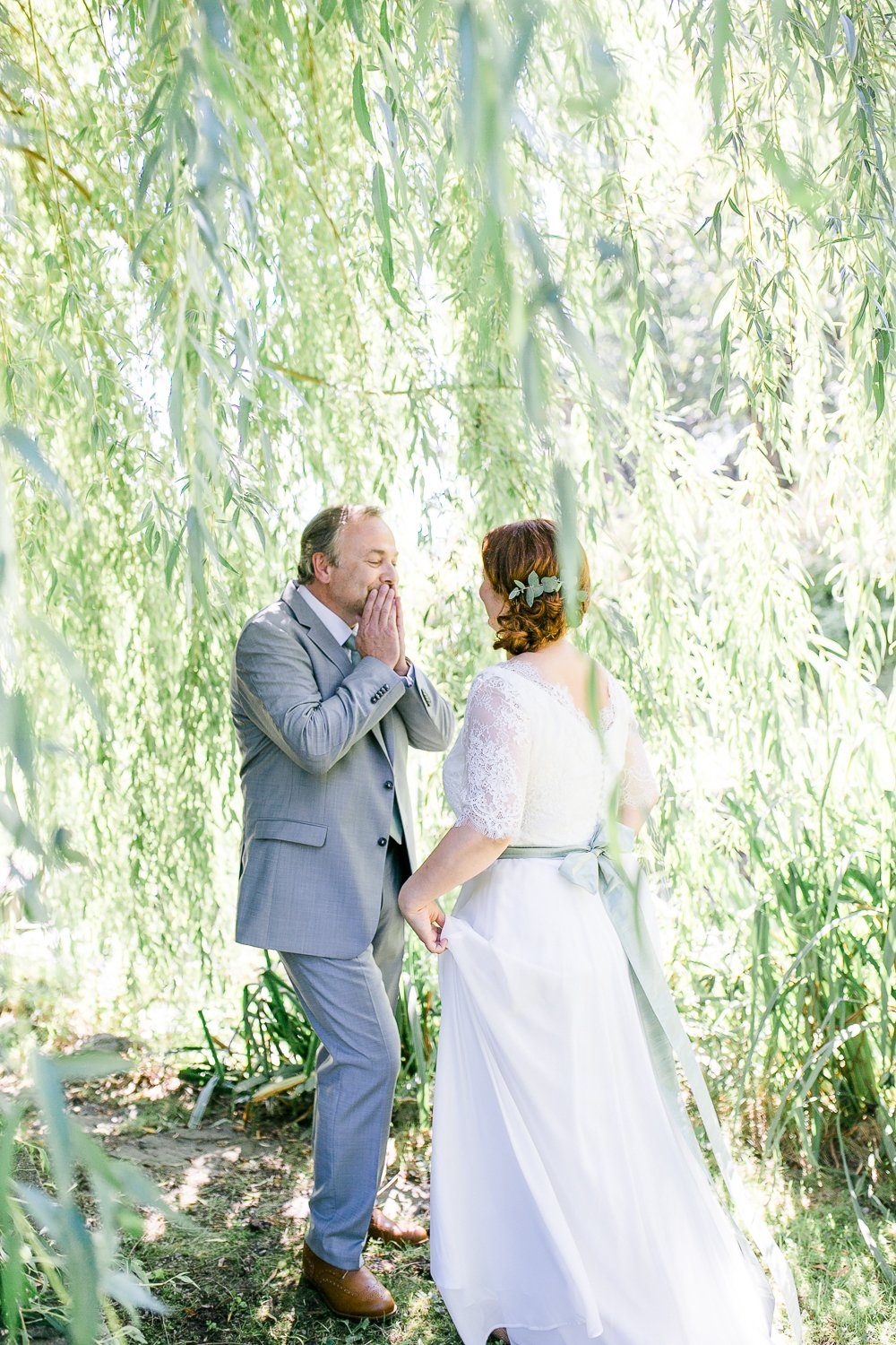 Nora und Andreas hatten sich für eine ‘First Look Moment’ entschieden, d.h. sie trafen bereits vor der Trauung als Brautpaar aufeinander. Ganz in Ruhe, ganz für sich und in voller Intensität. Diese Minuten sind für Paare etwas ganz besonderes, denn man kann sie genießen und tief ins Herz einschließen. Außerdem ist es eine schöne Gelegenheit, um ein paar Porträt Fotos zu machen. Ganz sicher einer der berührenden Momente eines Hochzeitstages.