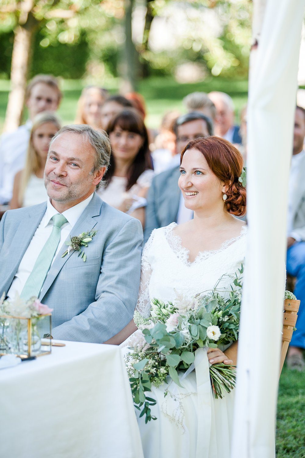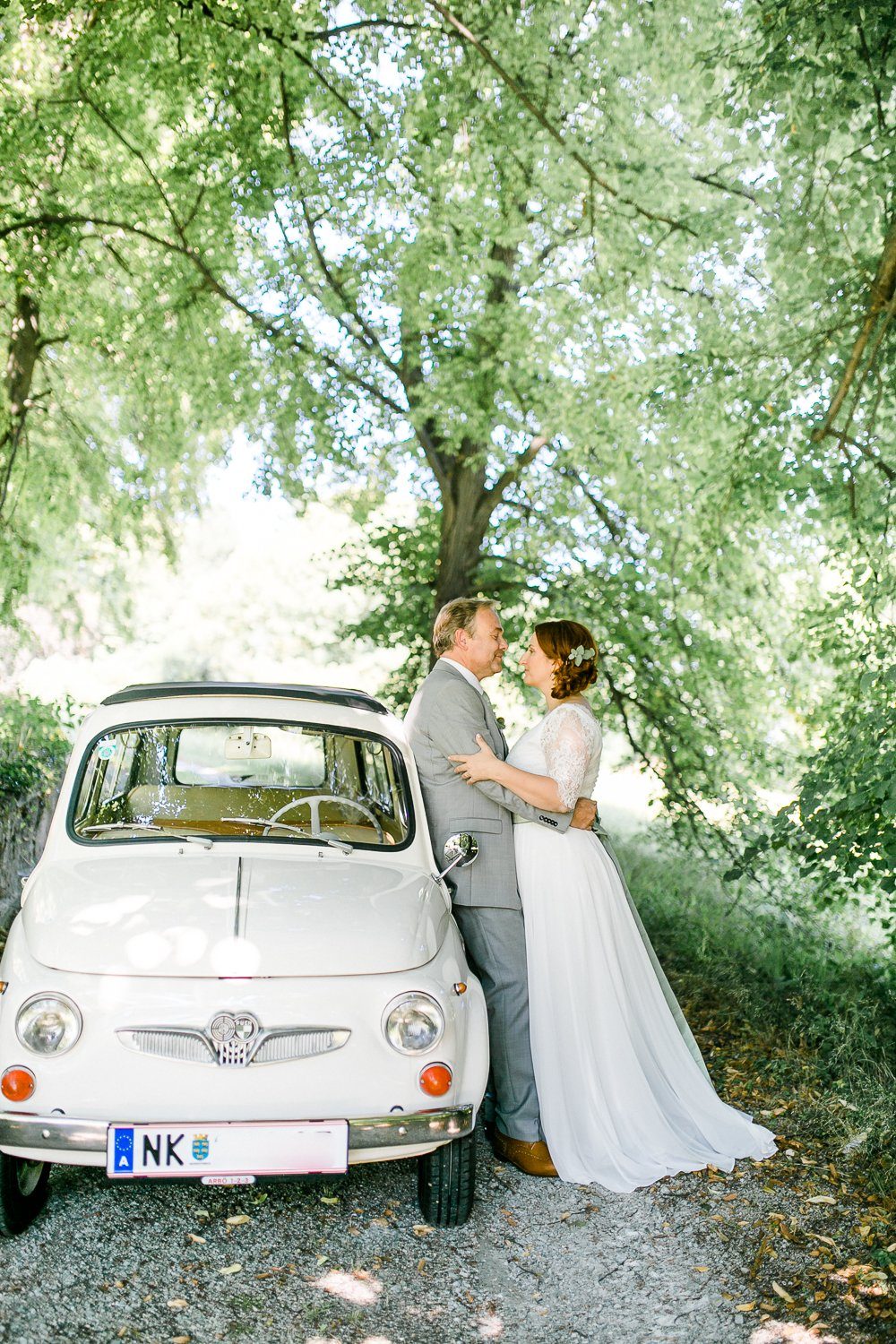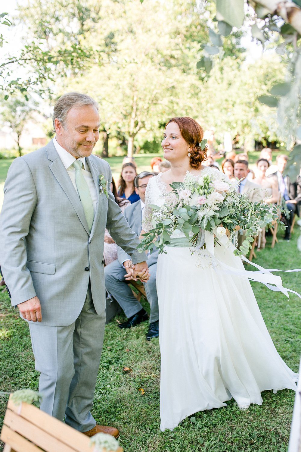 Nora und Andreas hatten sich für eine ‘First Look Moment’ entschieden, d.h. sie trafen bereits vor der Trauung als Brautpaar aufeinander. Ganz in Ruhe, ganz für sich und in voller Intensität. Diese Minuten sind für Paare etwas ganz besonderes, denn man kann sie genießen und tief ins Herz einschließen. Außerdem ist es eine schöne Gelegenheit, um ein paar Porträt Fotos zu machen. Ganz sicher einer der berührenden Momente eines Hochzeitstages.